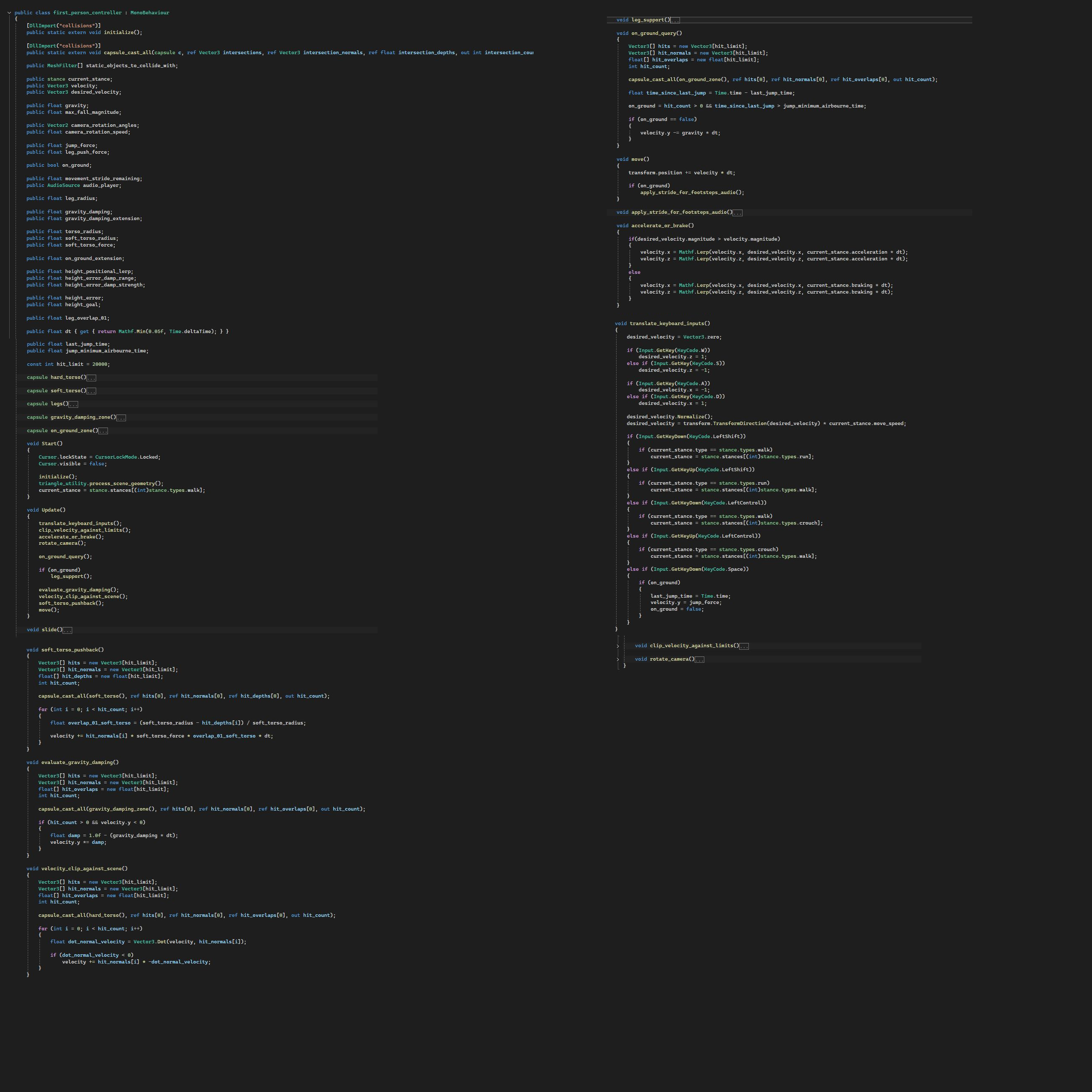 the operations in the update loop of the first person controller can be re ordered and customized as youd like